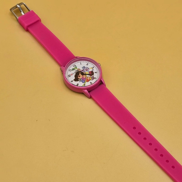 ساعت مچی بچه گانه دخترانه صورتی پررنگ بند پیو مناسب سن 3 تا 10 سال