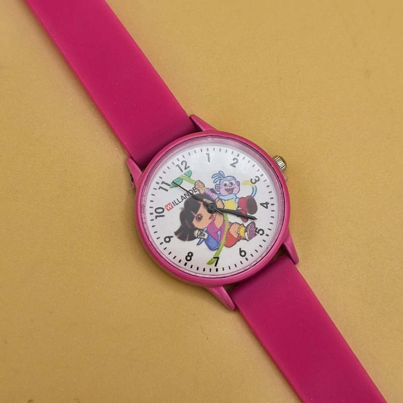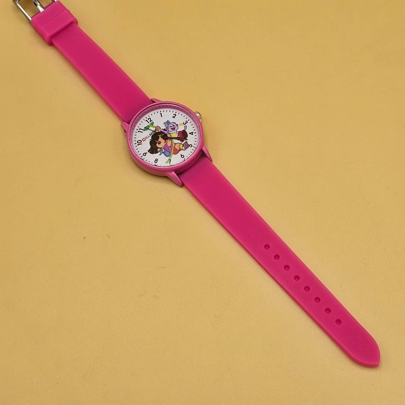 ساعت مچی بچه گانه دخترانه صورتی پررنگ بند پیو مناسب سن 3 تا 10 سال