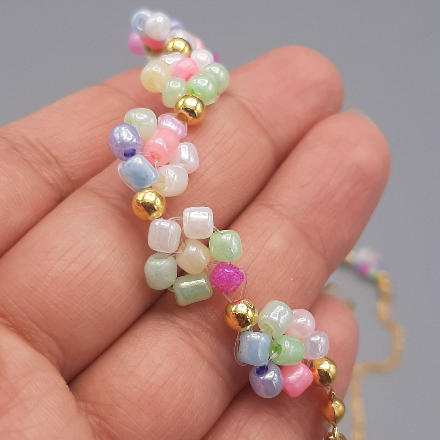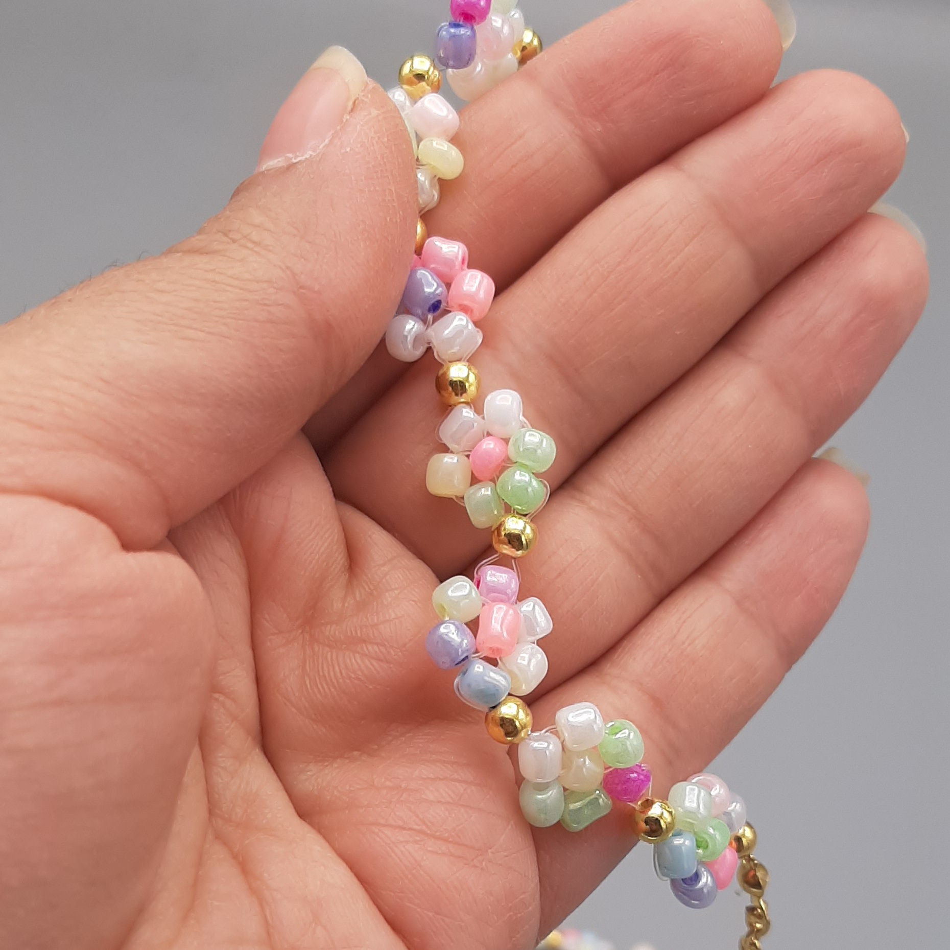 بافت گل مرواریدی کار دست همراه با زنجیر